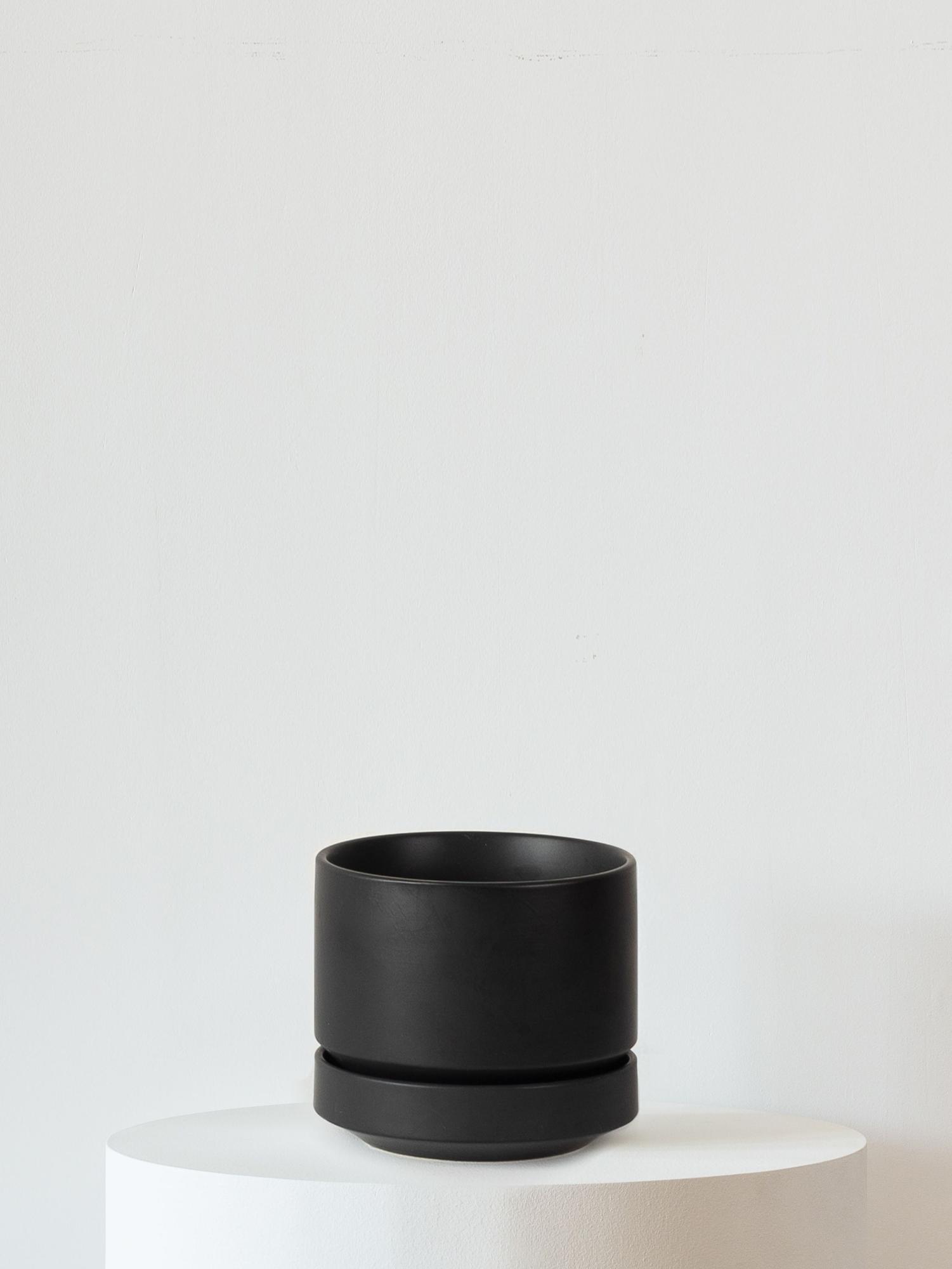 Sleek, two-piece minimalist vessel accompanied by a deep overflow saucer. Our planters are meticulously crafted from stoneware and high-fired to ensure enduring beauty and style for generations to come.