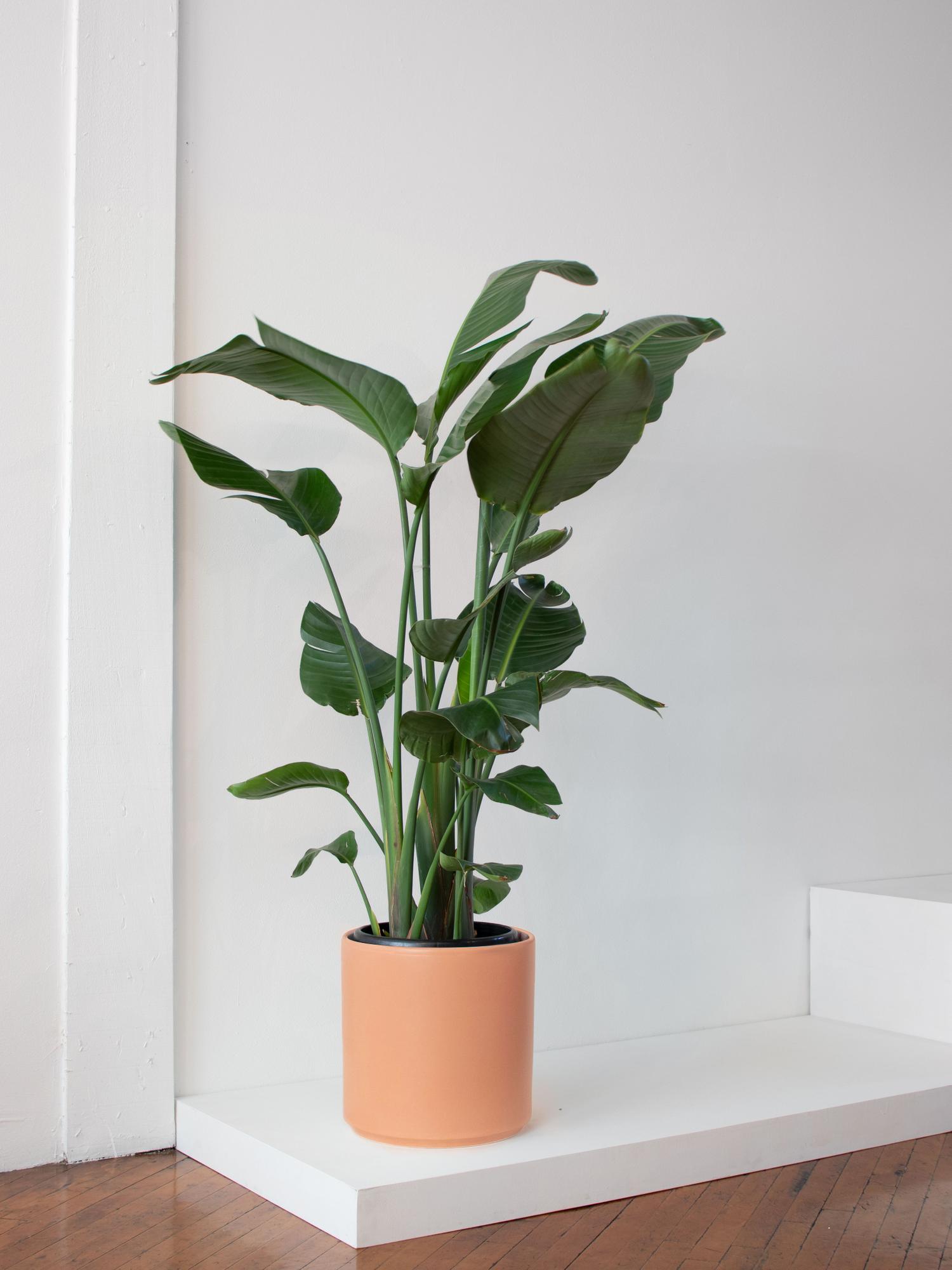 With long elegant leaves rising up from the bottom, the Bird of Paradise is a popular indoor plant for creating that instant jungle atmosphere. Imperfect like nature herself, this plant exhibits large foliage with natural splits and curls.