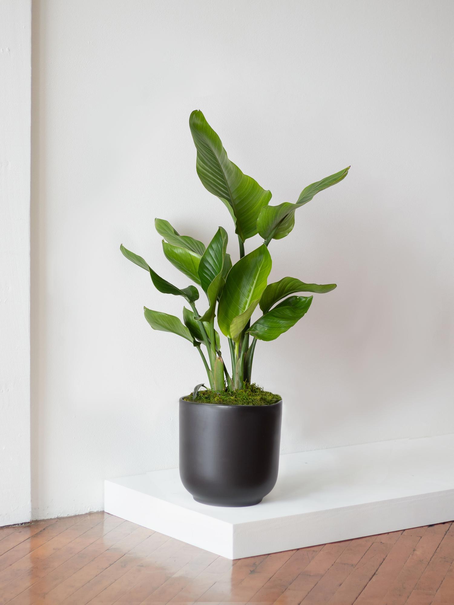 With long elegant leaves rising up from the bottom, the Bird of Paradise is a popular indoor plant for creating that instant jungle atmosphere. Imperfect like nature herself, this plant exhibits large foliage with natural splits and curls.