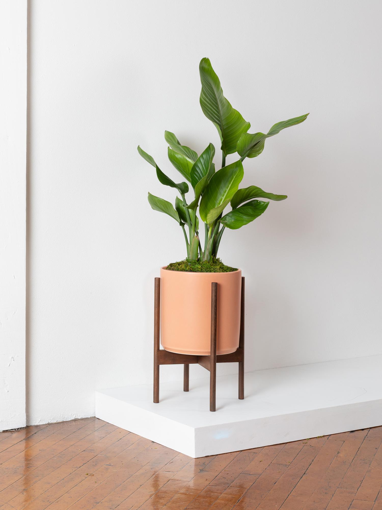 With long elegant leaves rising up from the bottom, the Bird of Paradise is a popular indoor plant for creating that instant jungle atmosphere. Imperfect like nature herself, this plant exhibits large foliage with natural splits and curls.