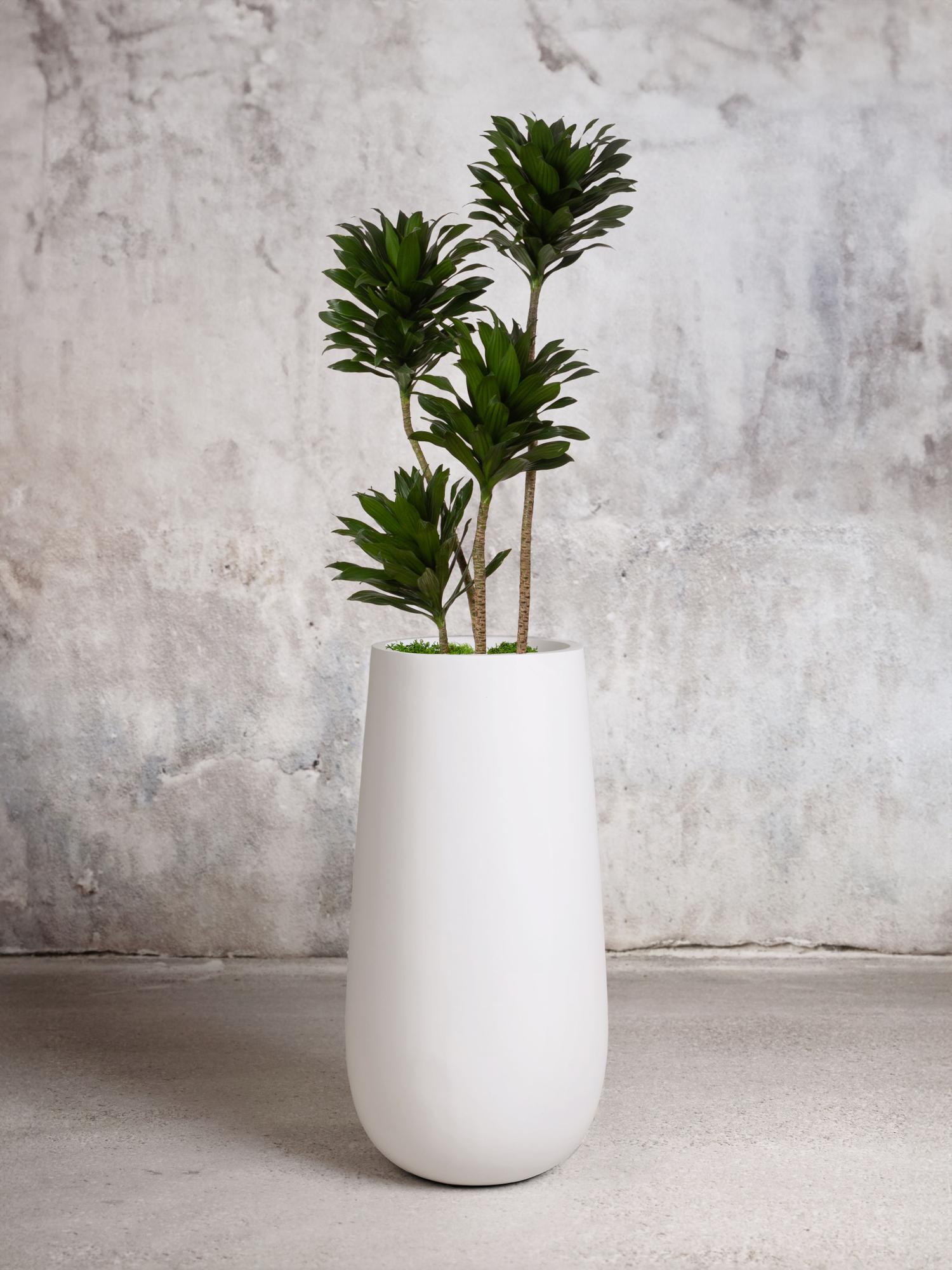 After staging the Dracaena Compacta within the planter, Flute adds 20.2” to overall height.