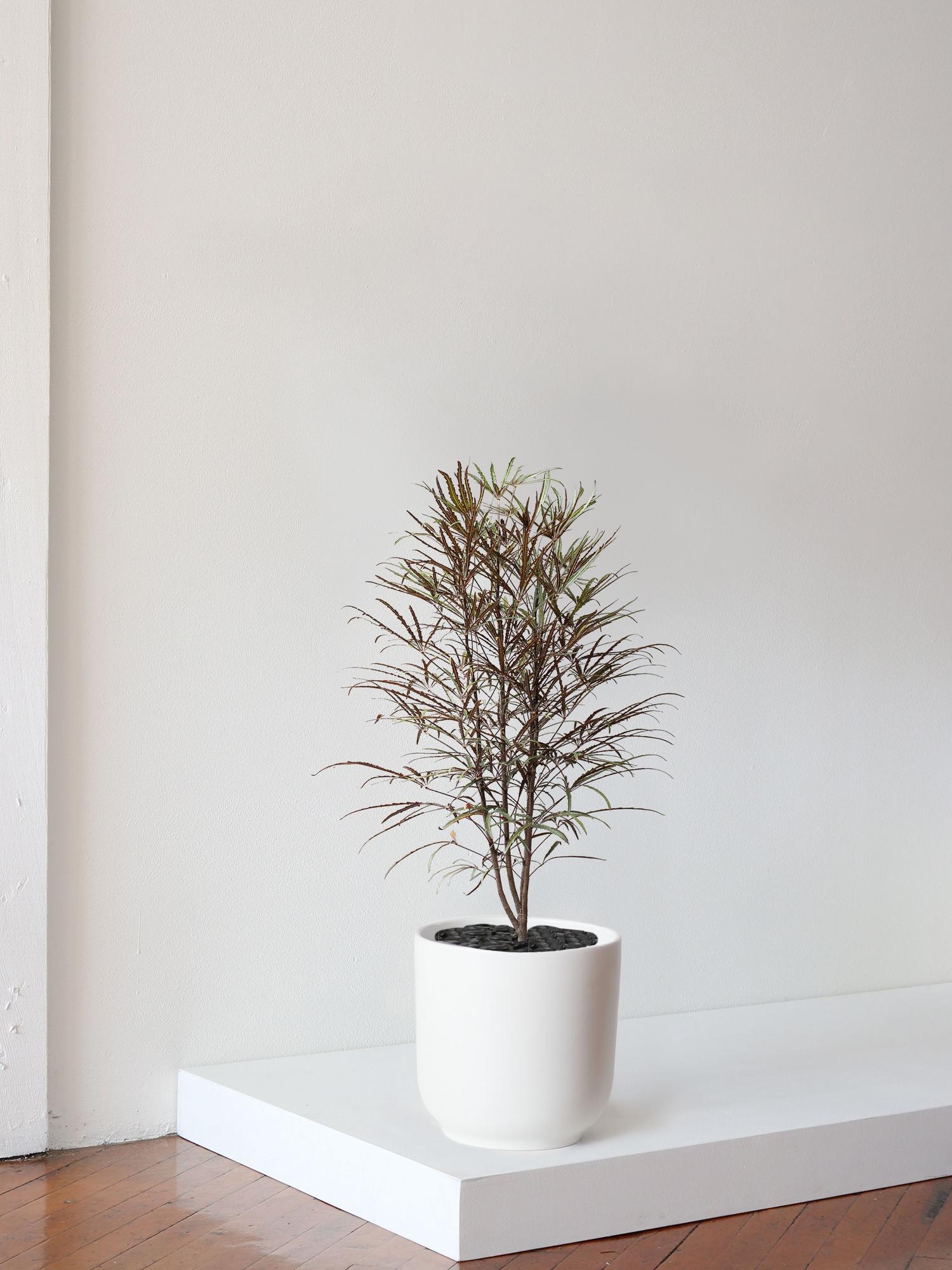 The False Aralia is a unique houseplant with deeply serrated foliage that turns from a colorful rusty red to deep emerald green over time. Thanks to its light and feathery nature and tendency towards vertical growth, this plant is an excellent choice for tighter spaces both indoors and out.