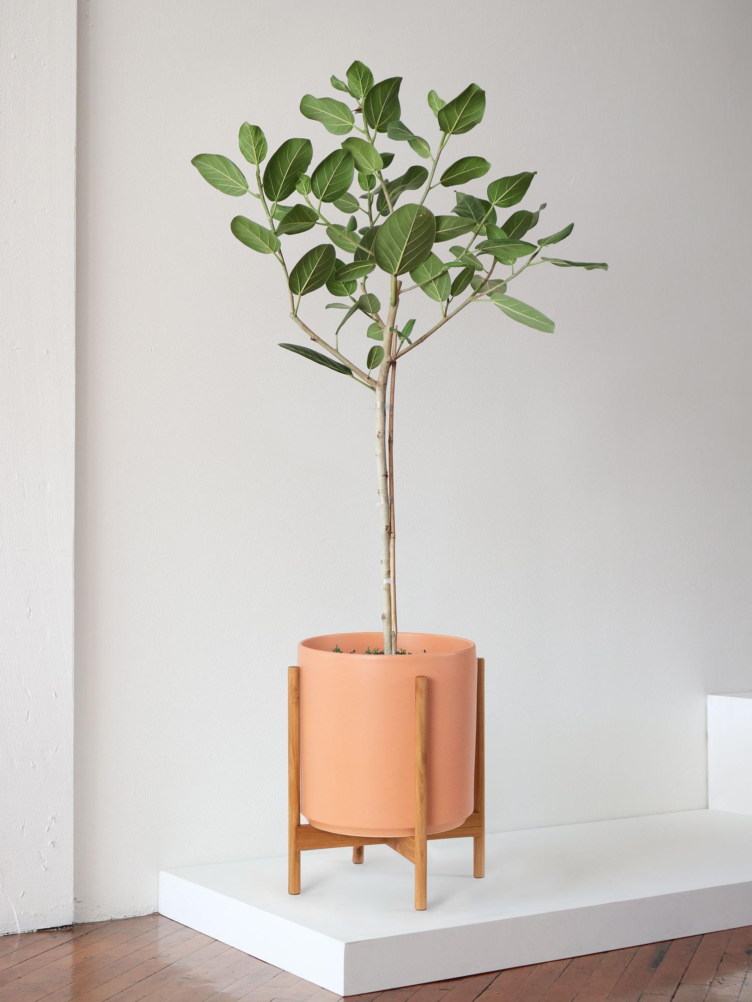 Our Mid-Century collection pairs high-fire ceramic pots with reclaimed wood stands, offering a nod to classic design with a focus on sustainability. Teak is used for light and dark stands, while black stands feature durable mahogany, underscoring our commitment to sophisticated indoor gardening and environmental responsibility. Designed and engineered with form and function in mind, these pieces are perfectly sized, water sealed, surface safe, and made from non-toxic materials.