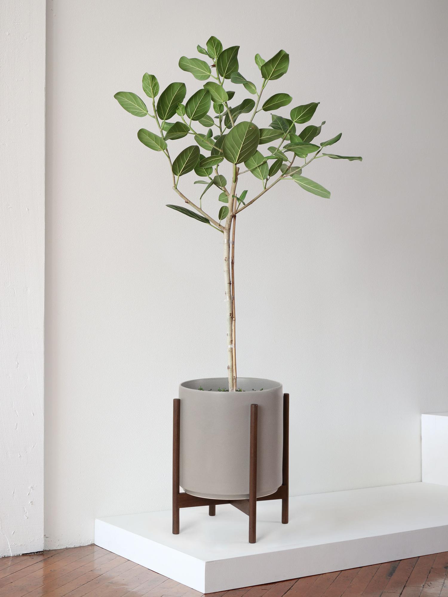 Our Mid-Century collection pairs high-fire ceramic pots with reclaimed wood stands, offering a nod to classic design with a focus on sustainability. Teak is used for light and dark stands, while black stands feature durable mahogany, underscoring our commitment to sophisticated indoor gardening and environmental responsibility. Designed and engineered with form and function in mind, these pieces are perfectly sized, water sealed, surface safe, and made from non-toxic materials.