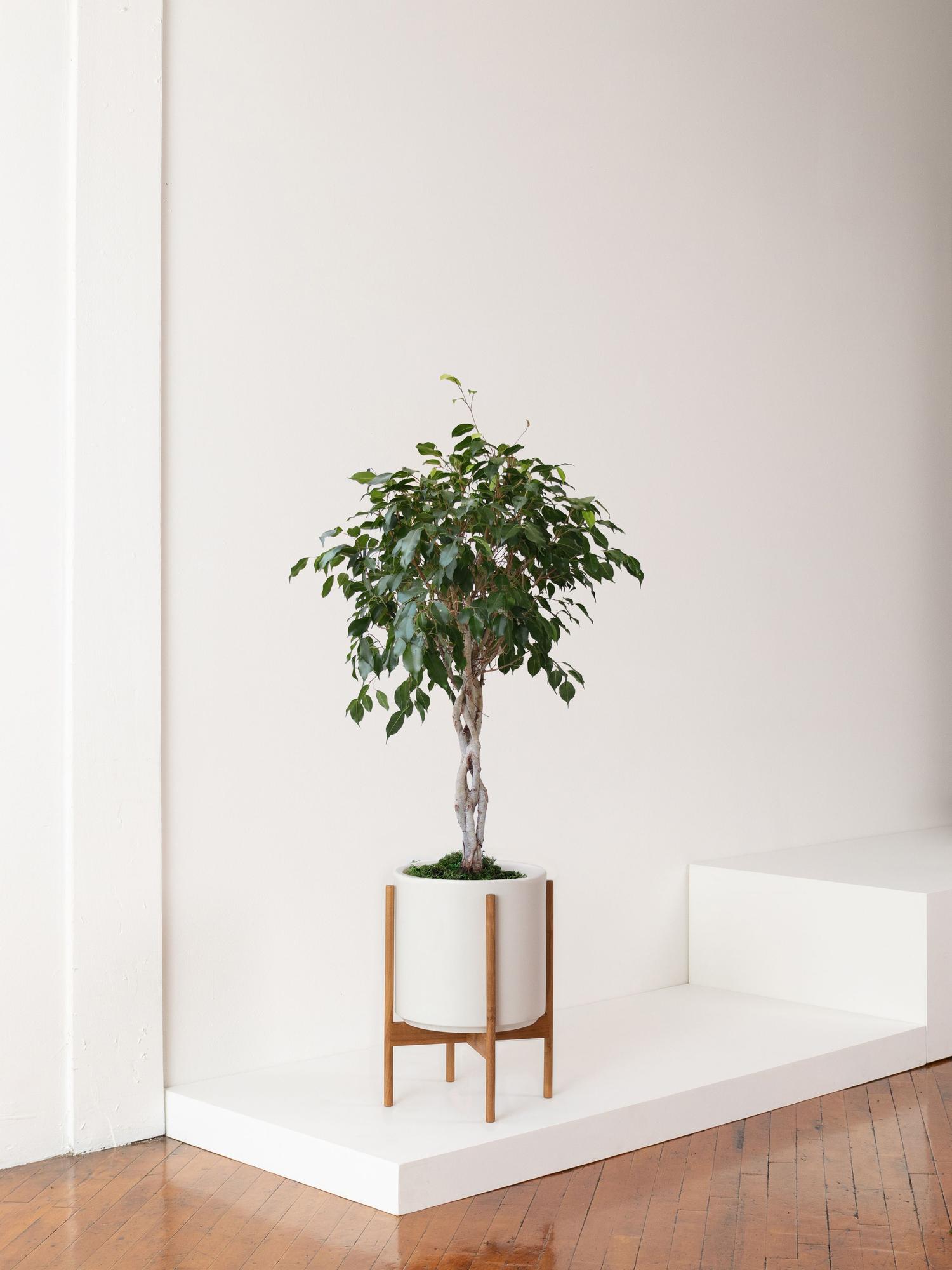Airy and elegant with a gently braided trunk, the Ficus Benjamina AKA the Weeping Fig is a beloved staple of timeless interior style. With its gently cascading branches and whimsical canopy of feathered leaves, this graceful houseplant brings unique organic beauty to any space.