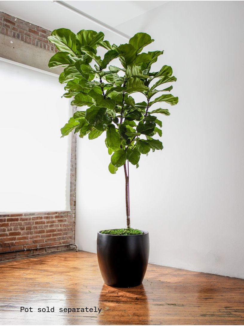 An extra tall variety of the popular Fiddle Leaf Fig Tree. A striking element of living greenery for vast spaces. The Fiddle Leaf Fig continues to reign as a popular tree amongst interior designers. This plant needs bright indirect light.
