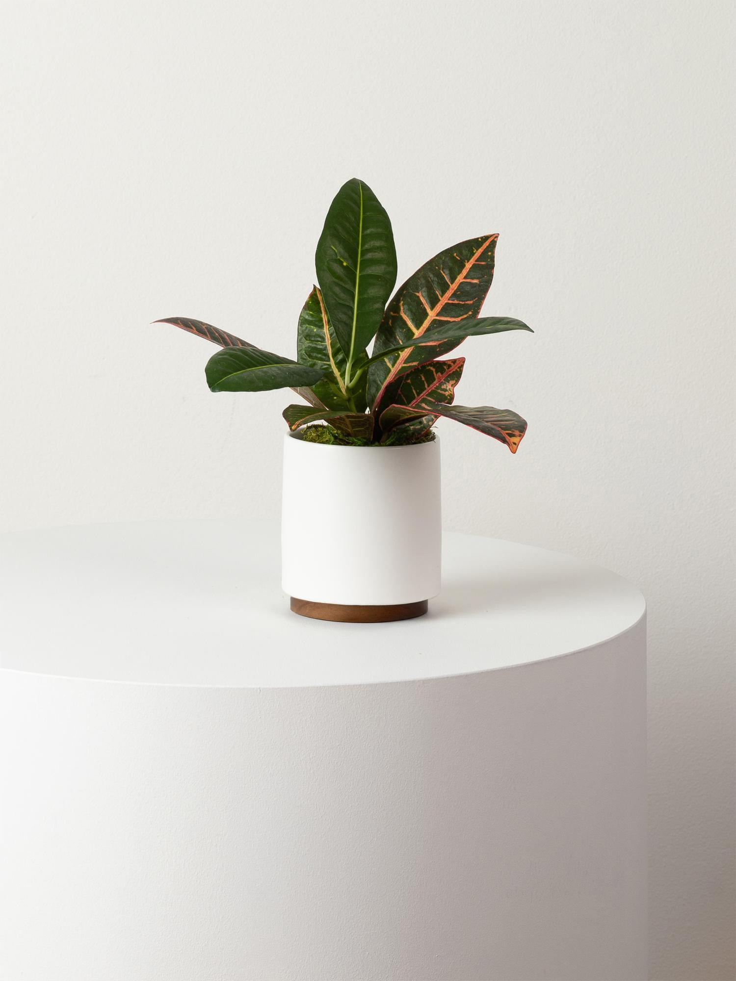 Our Mid-Century collection pairs high-fire ceramic pots with reclaimed wood stands, offering a nod to classic design with a focus on sustainability. Designed and engineered with form and function in mind, these pieces are perfectly sized, water sealed, surface safe, and made from non-toxic materials.