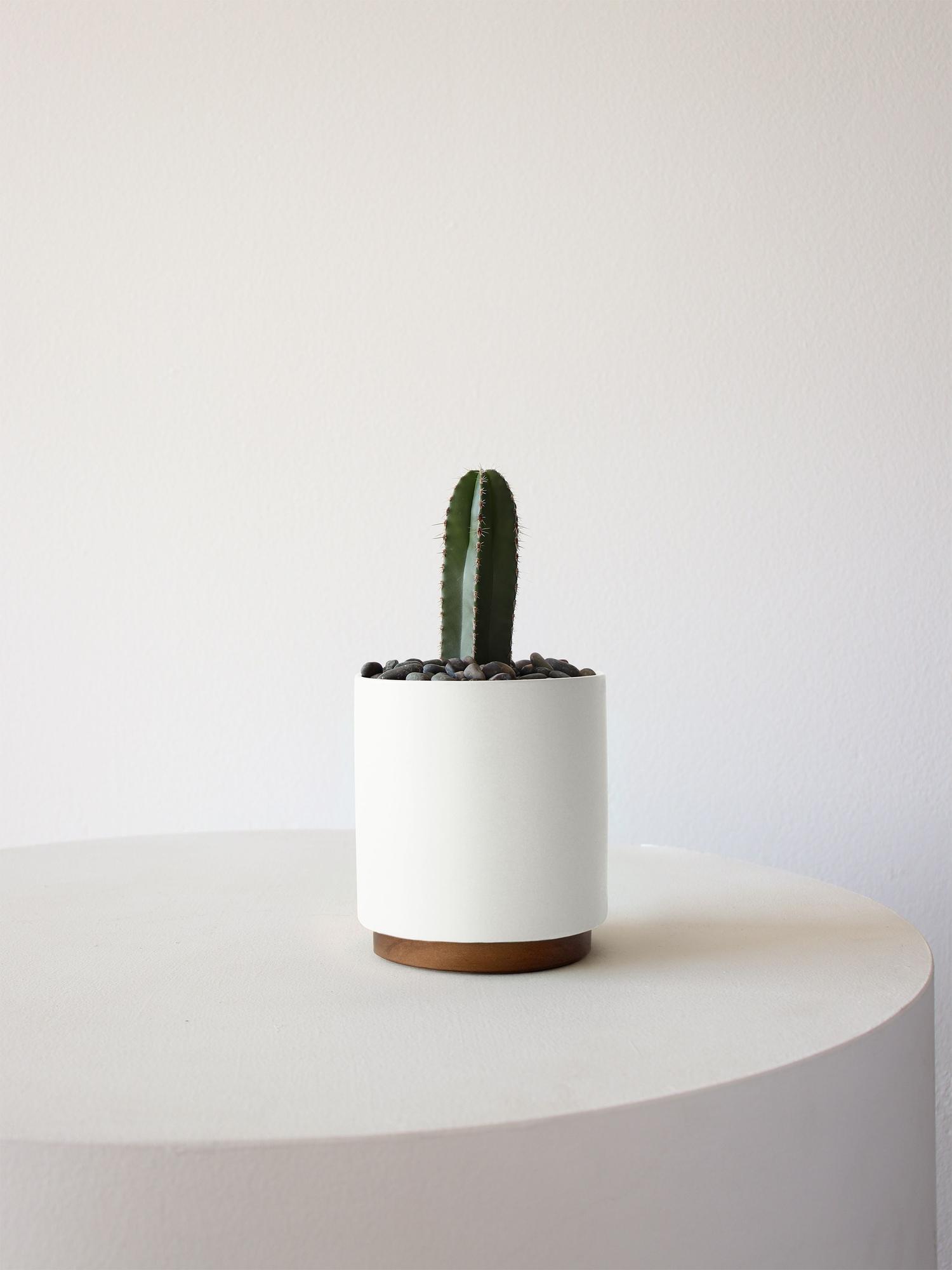 Our Mid-Century collection pairs high-fire ceramic pots with reclaimed wood stands, offering a nod to classic design with a focus on sustainability. Designed and engineered with form and function in mind, these pieces are perfectly sized, water sealed, surface safe, and made from non-toxic materials.