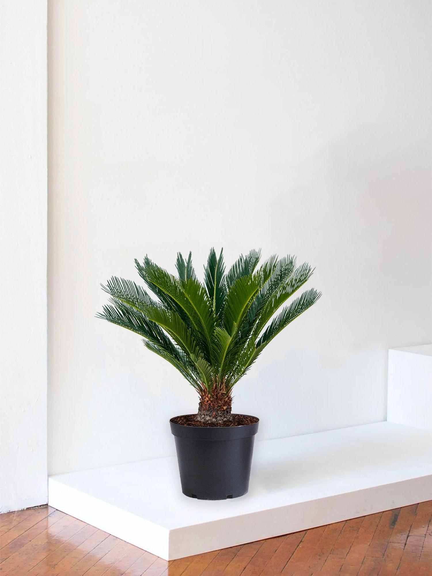 Originaire des tropiques du Japon et incarnant l'esthétique luxuriante de la jungle, le palmier sagou est une variété de cycade verdoyante et texturée, convenant à la fois aux environnements intérieurs et extérieurs. Incroyablement facile à entretenir, cette plante peut vivre des décennies, voire jusqu'à 100 ans.