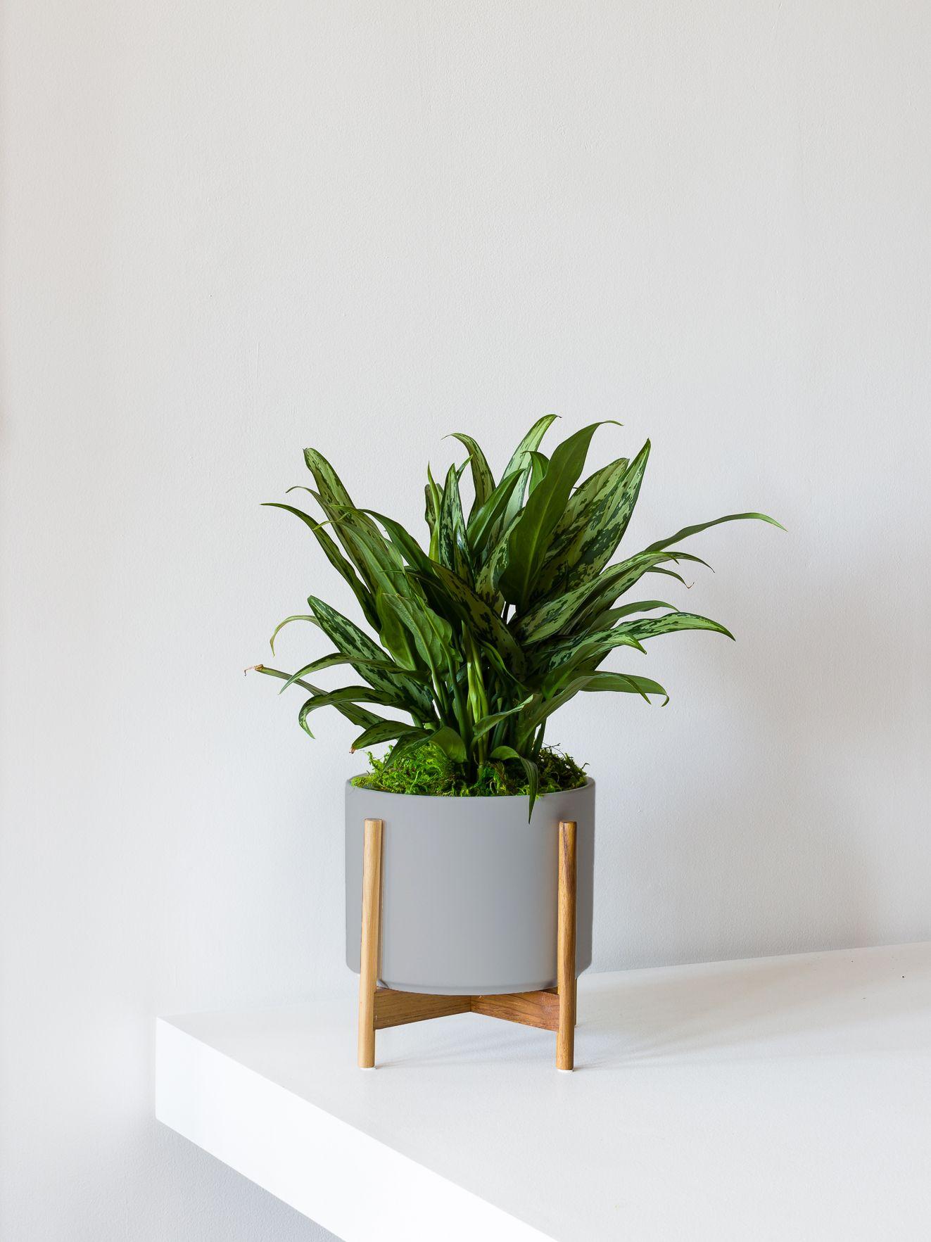 The Tiger Evergreen is one of over 20 different varieties of the Aglaonema, or Chinese Evergreen, family. Native to the tropical rainforests of Southeast Asia, these beautifully lush and colorful plants have quickly become a staple for interior plant styling thanks to their easy going nature and ability to thrive with little or artificial light.