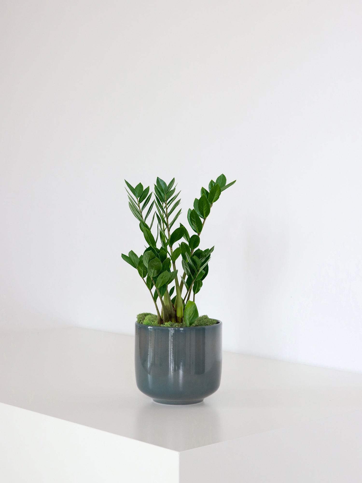 Son nom latin Zamioculcas fait référence à deux espèces auxquelles elle ressemble : le Zamia et la Colocase. Son feuillage très luisant évoque pour certains un large bouquet de plumes et pour d’autres une fougère succulente qui apportera un souffle sauvage à votre intérieur.